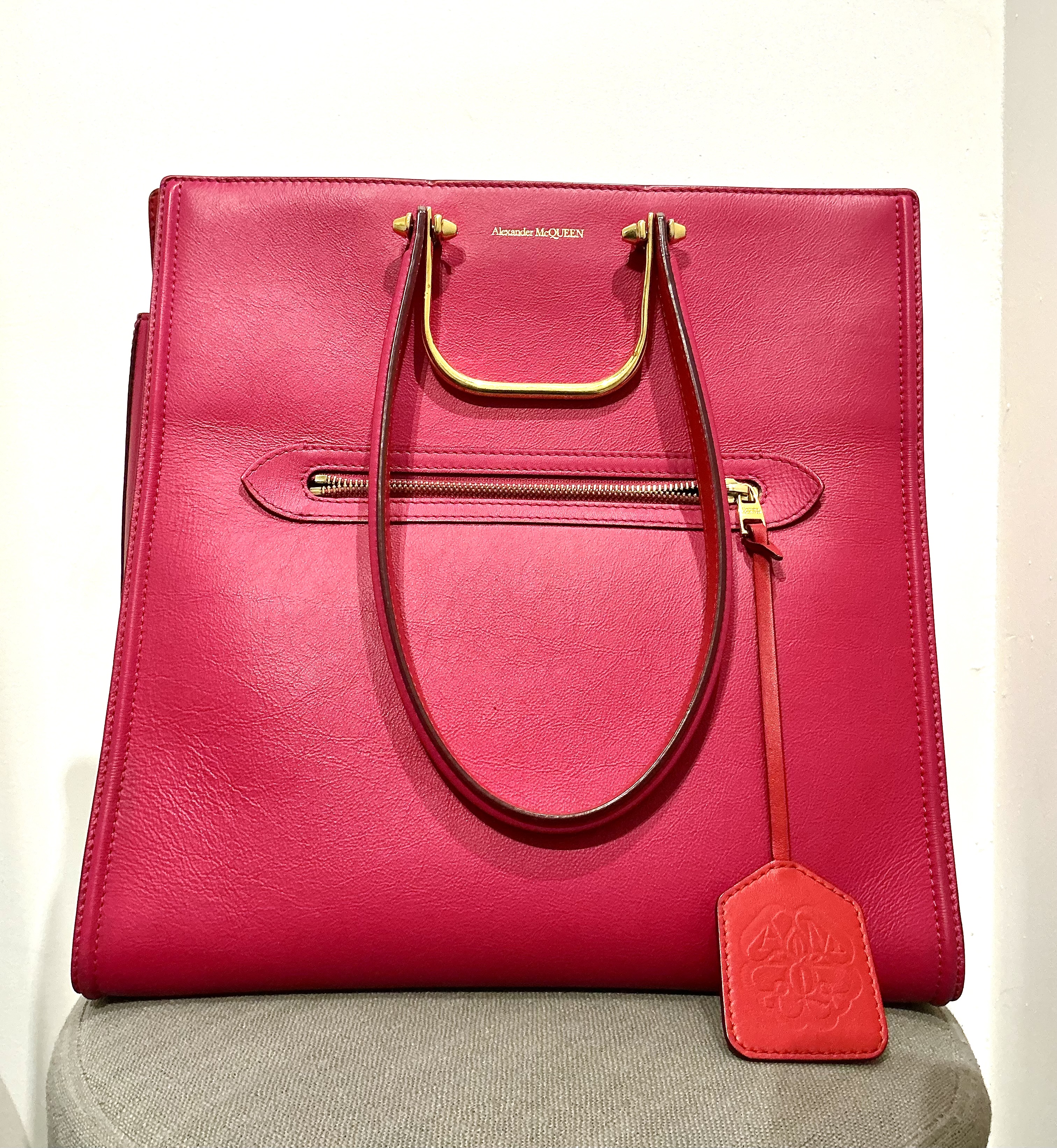 Cabas en cuir lisse fushia et rouge avec bijouterie dorée ALEXANDER Mc QUEEN
