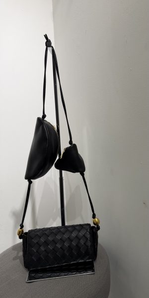 Sac bandoulière en cuir tressé noir avec petites poches et métal doré BOTTEGA VENETA