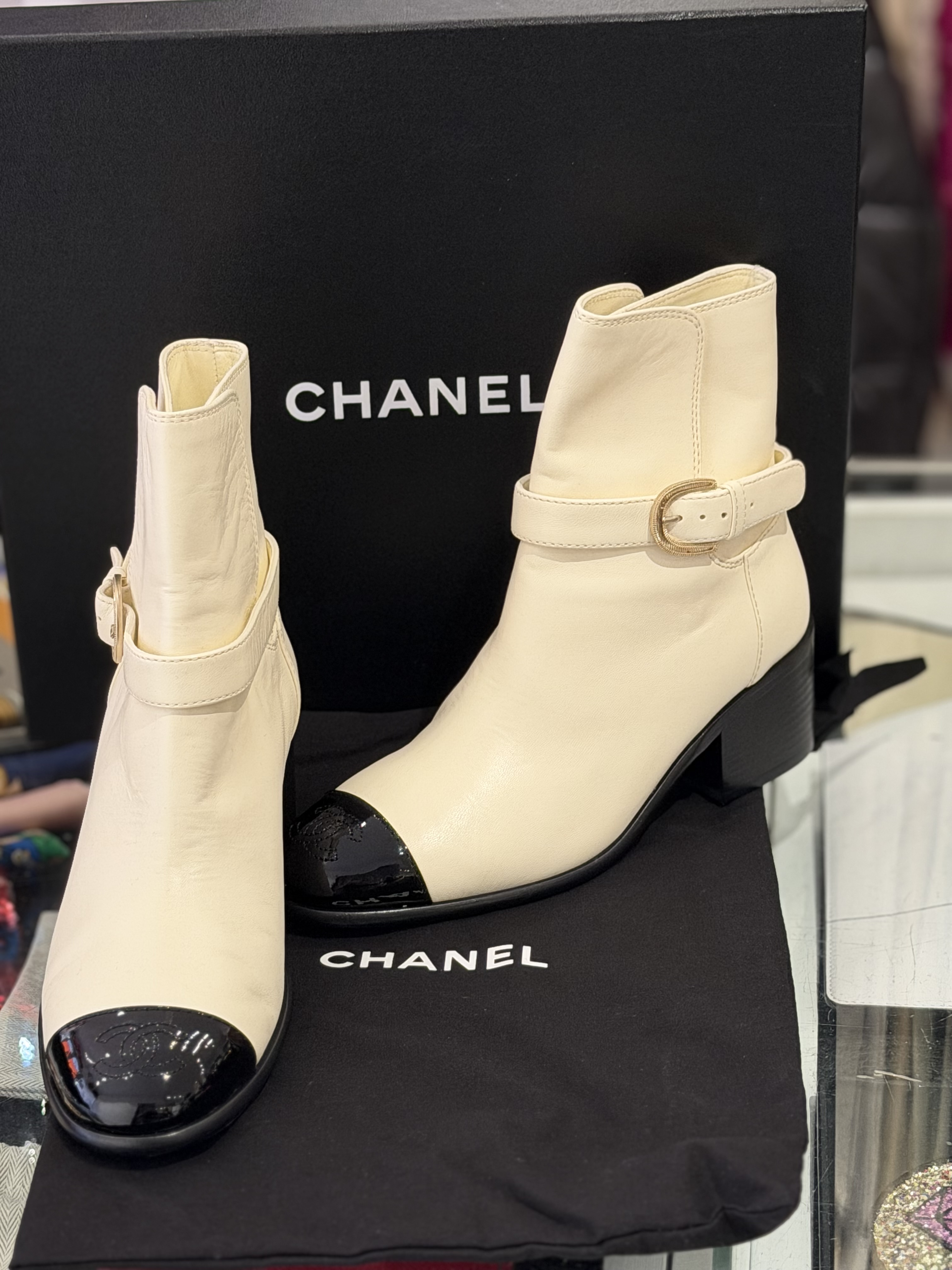 Bottines en cuir crème et vernis noir pointure 36 CHANEL