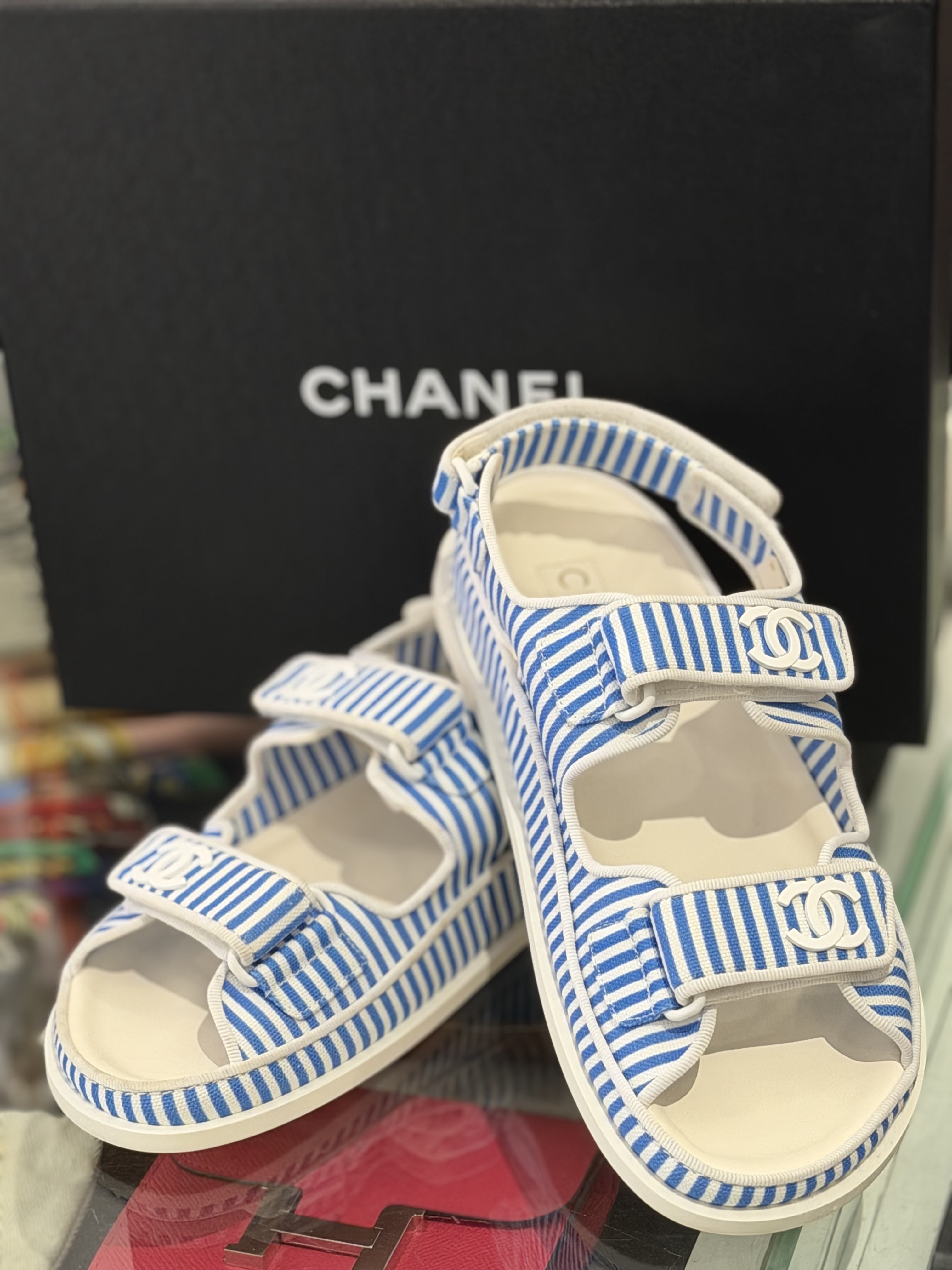 Sandales en coton rayé bleu jean et blanc pointure 36 CHANEL