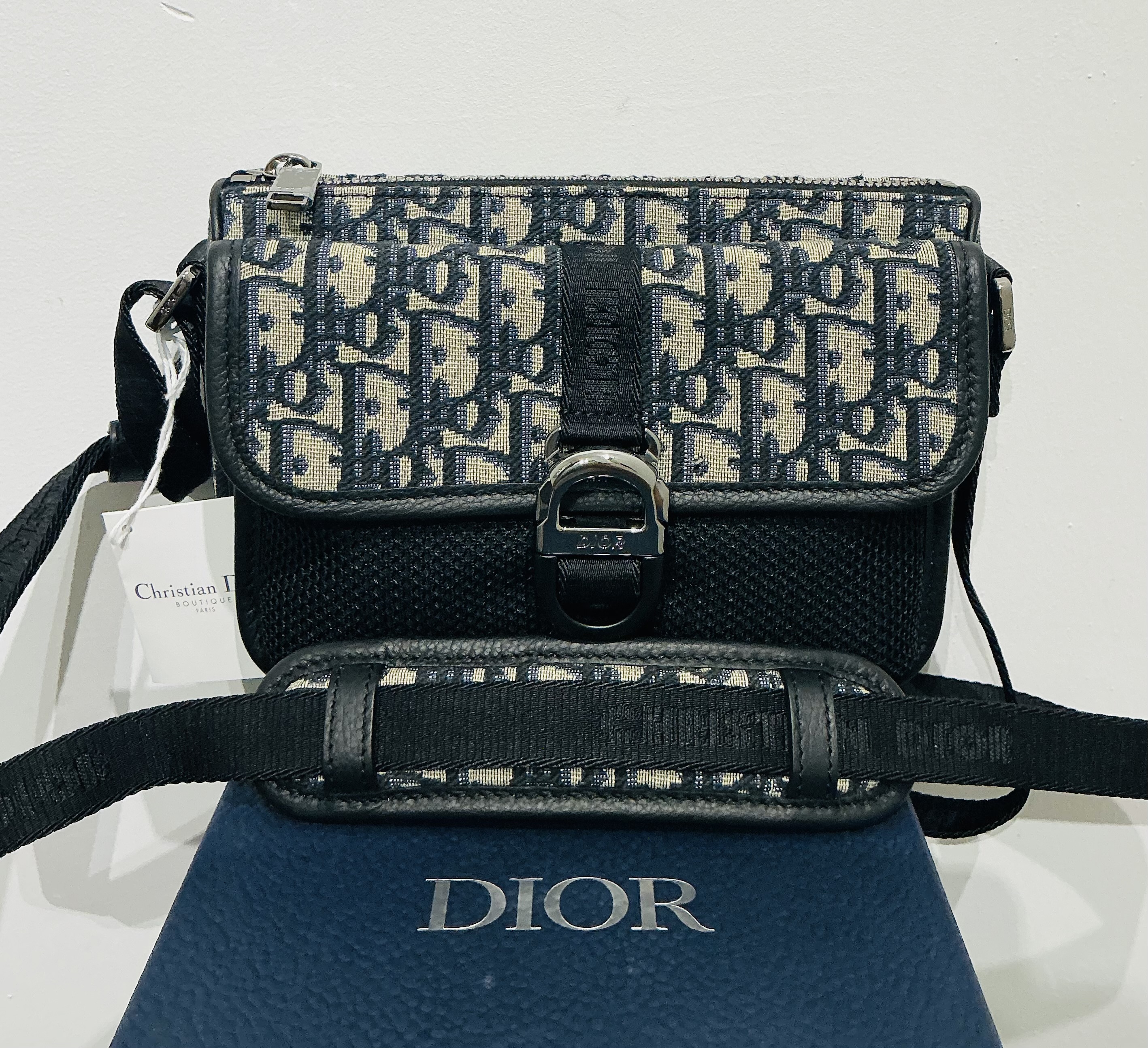 Mini sac bandoulière DIOR 8 toile jacquard oblique bleu DIOR