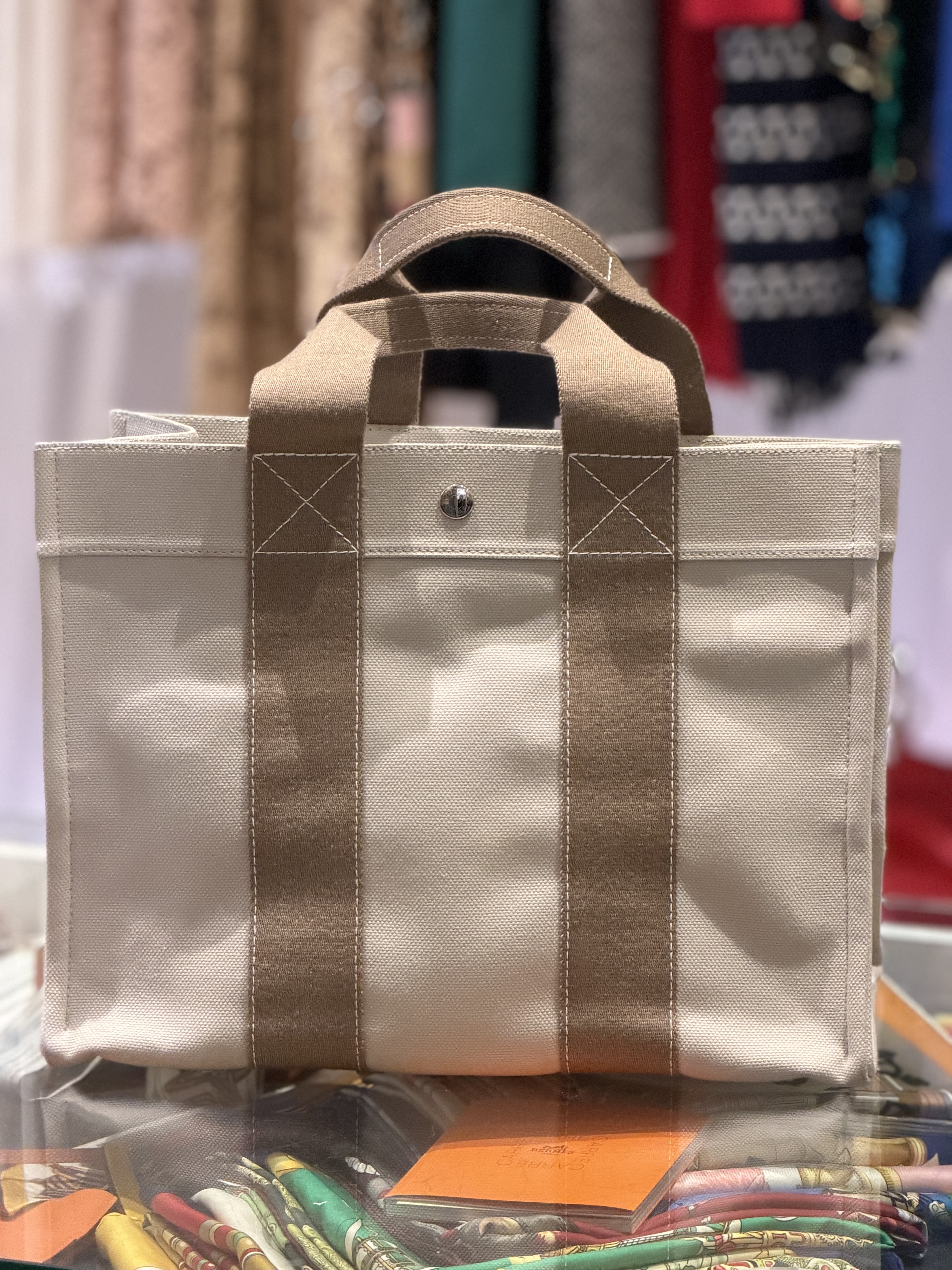 Sac TOTE bag fourre-tout en toile écru et étoupe HERMÈS