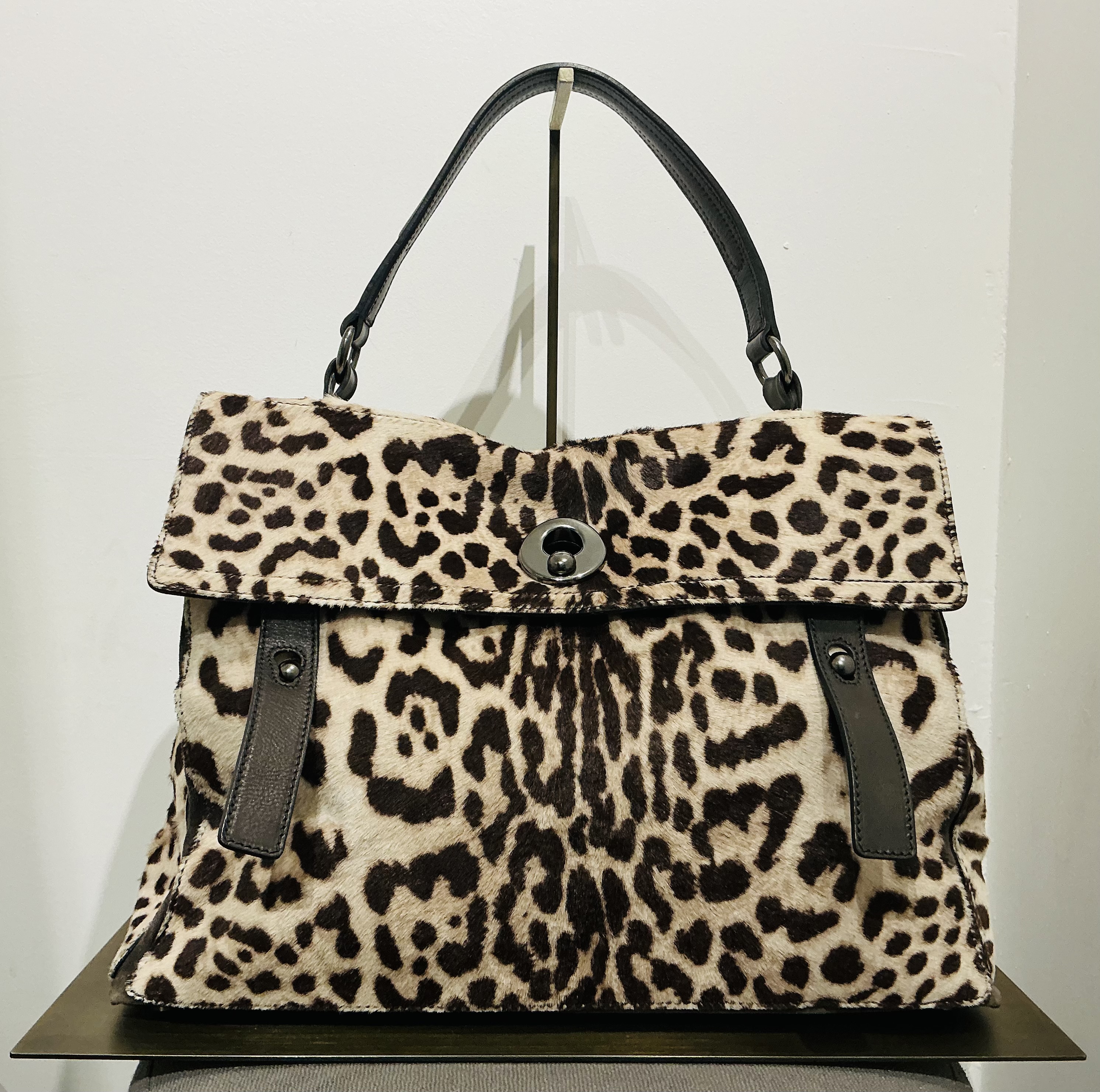 Sac MUSE animalier et cuir noir SAINT LAURENT