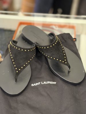 Sandales en cuir et daim noir avec détails dorés pointure 36 SAINT LAURENT