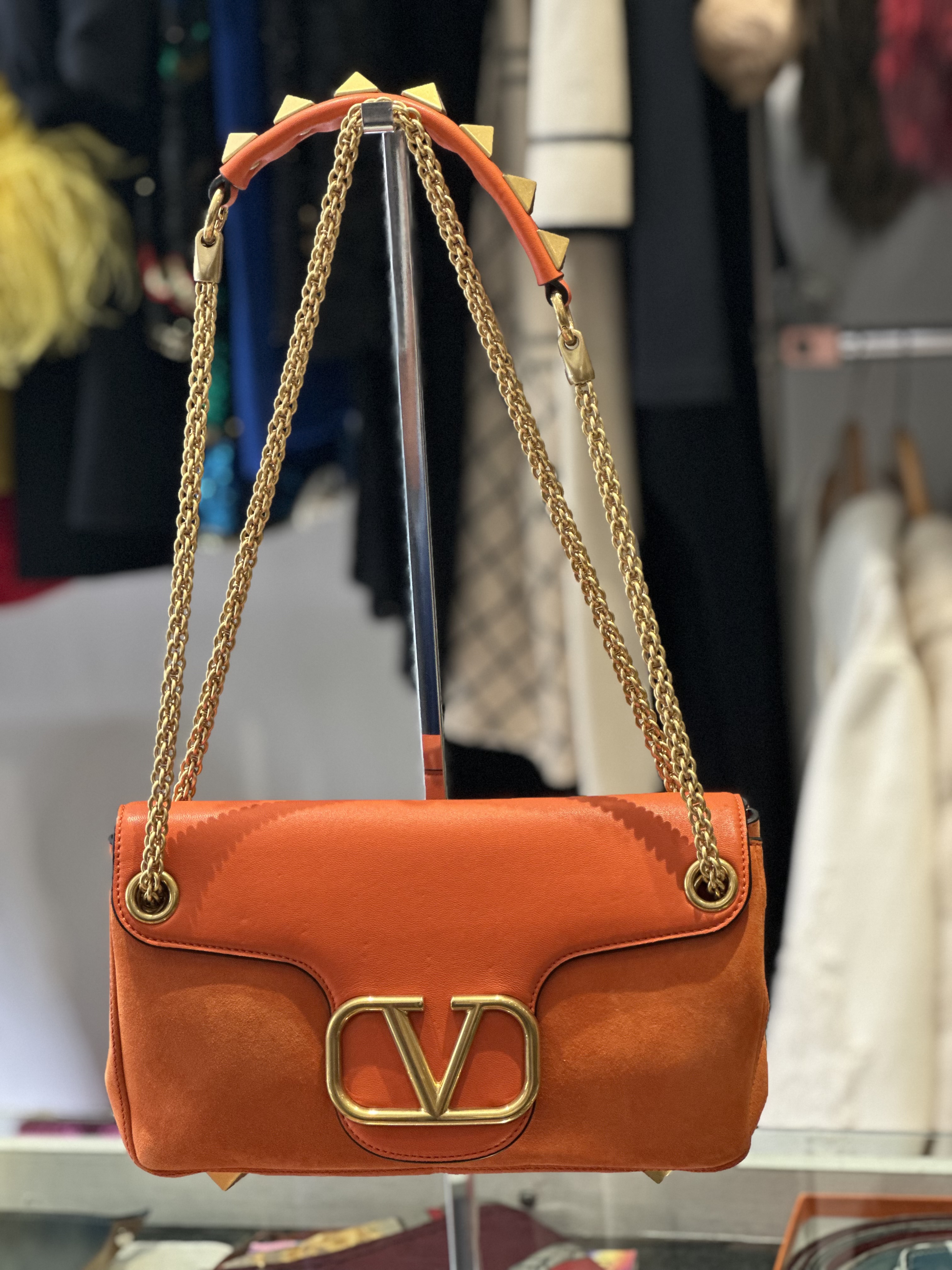 Sac Romanstud porté épaule en daim et cuir orange avec bijouterie dorée VALENTINO